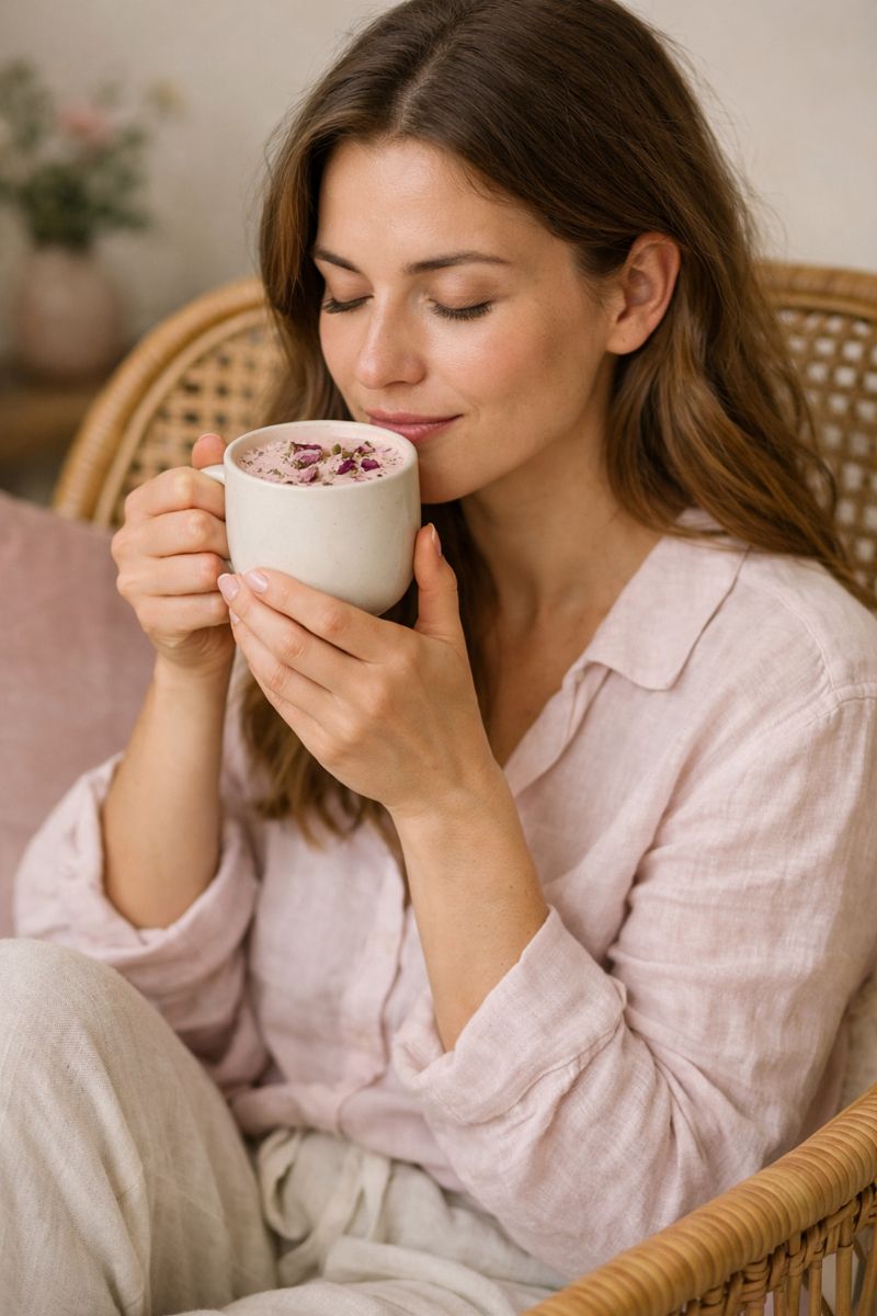 Latté ayurvédique à la rose et cardamome