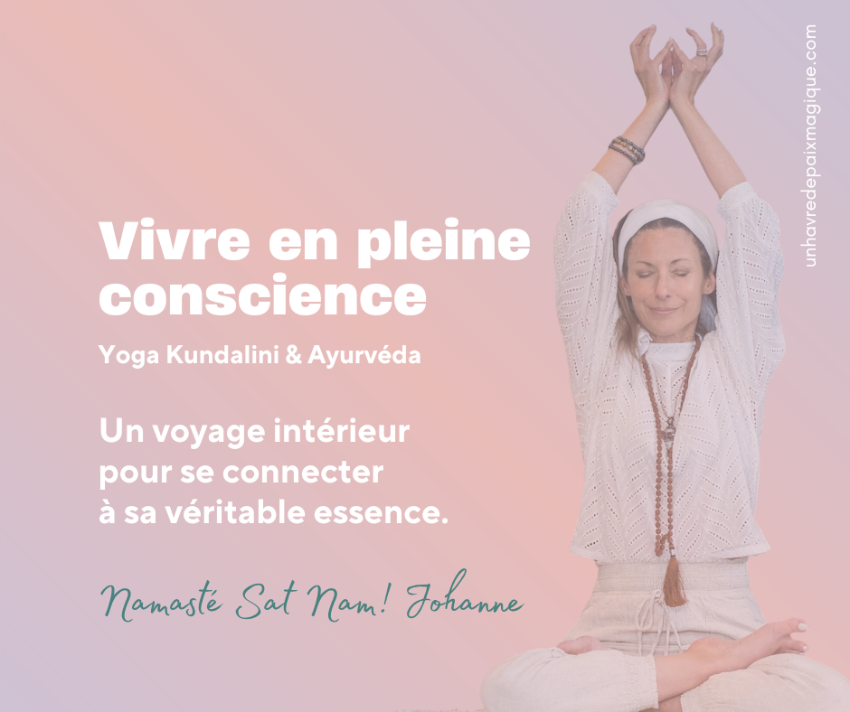 Prêt(e) à faire le prochain pas vers une version encore plus épanouie de toi-même ? Découvre mon programme Vivre en pleine conscience en ligne qui comprend des classes de yoga kundalini enrichies de sagesse ancestrale, notamment l’ayurvéda, afin d’approfondir ton expérience.
